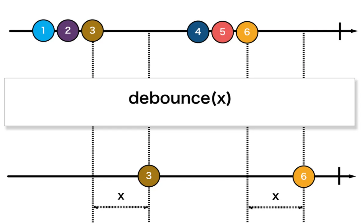 ์ฐ์์ ์ธ ์ด๋ฒคํธ๊ฐ ๋ฐ์ํ์ ๋, ํน์ ์๊ฐ ๋ฒ์๋์ ๋ค๋ฅธ ์ด๋ฒคํธ๊ฐ ๋ฐ์๋์ง ์๋๋ค๋ฉด ๊ฐ์ฅ ๋ง์ง๋ง์ ๋ฐ์ํ ์ด๋ฒคํธ๋ง ๋ฐฉ์ถ๋๊ณ ๋๋จธ์ง ์ฐ์์ ์ธ ์ด๋ฒคํธ๋ blockํด์ฃผ๋ ์ญํ ์ ํฉ๋๋ค.