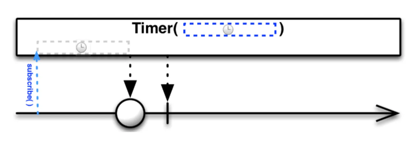 timer๋ interval๊ณผ ๋์ผํ๊ฒ Observable์ ์ค์งํ๊ธฐ ์ํด์๋ .take๋ฉ์๋๋ฅผ ์ฌ์ฉํด์ ๋ฐํ๋๋ ์ด๋ฒคํธ ์๋ฅผ ์ ํํ๊ฑฐ๋, dispose๋ฅผ ์ง์ ํธ์ถํด์ผ ํฉ๋๋ค. interval๊ณผ๋ ๋ค๋ฅด๊ฒ dueTime๋ฅผ ์ถ๊ฐํด์ ์ด๋ฒคํธ ๋ฐํ์ด ์ง์ฐ๋๋ ์๊ฐ์ ๋ง๋ค ์ ์์ต๋๋ค.