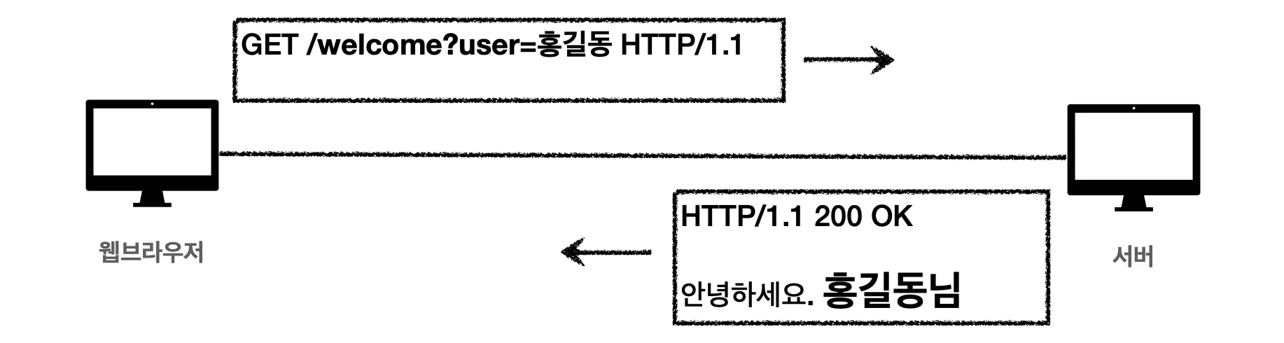 우리는 상태로 welcome 페이지에 접근하는 상황으로 돌아가려고 합니다. 우리는 서버에서 응답 메시지로 “안녕하세요. 손님” 대신에 “안녕하세요. 홍길동님” 이라고 내려주길 원합니다.