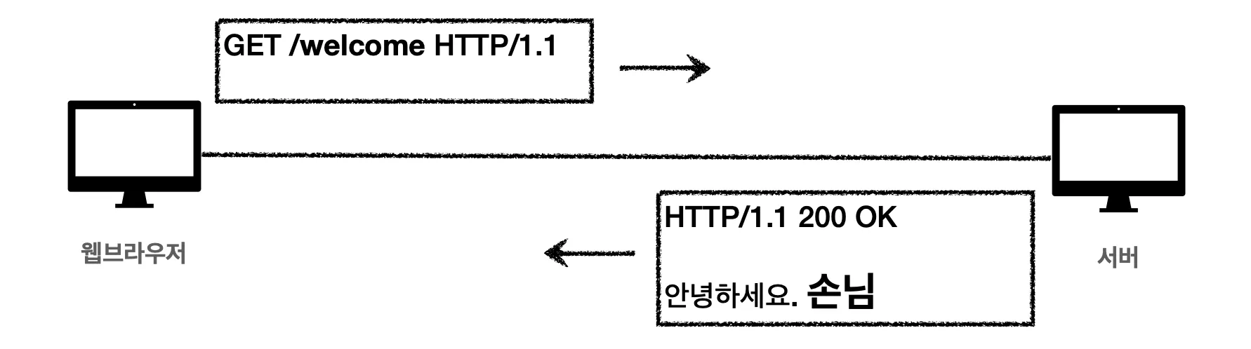 서버에 /welcome 요청이 들어옵니다. 서버는 응답 메시지를 내려줍니다.