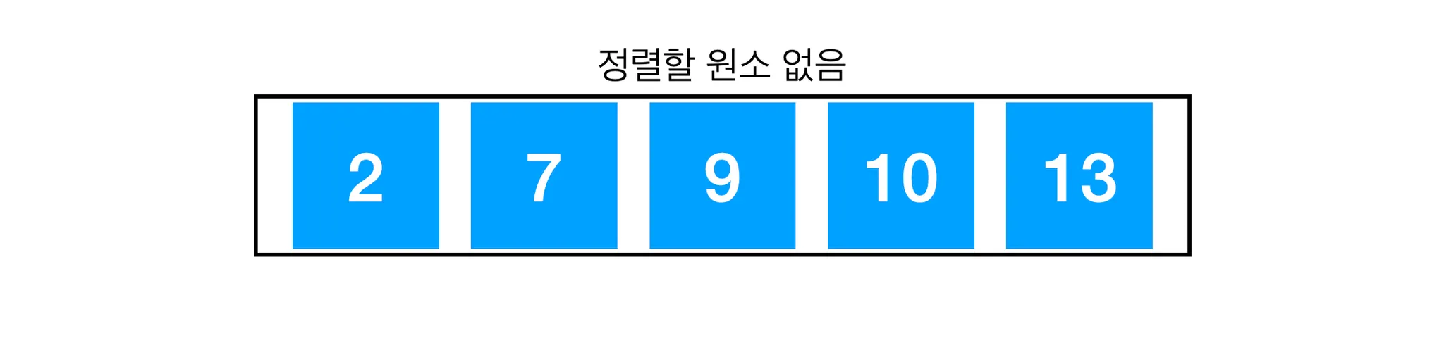 혹시나 완전 거꾸로 된 배열이기 때문에 성능이 구렸던 게 아닐까 싶어서 완전히 정렬이 되어있는 배열을 넣어보았습니다. 어떤 상황에 있던지 for문을 현재 기준 원소로부터 끝까지 돌리기 때문에 비슷할 거라고 예상하긴 했습니다.