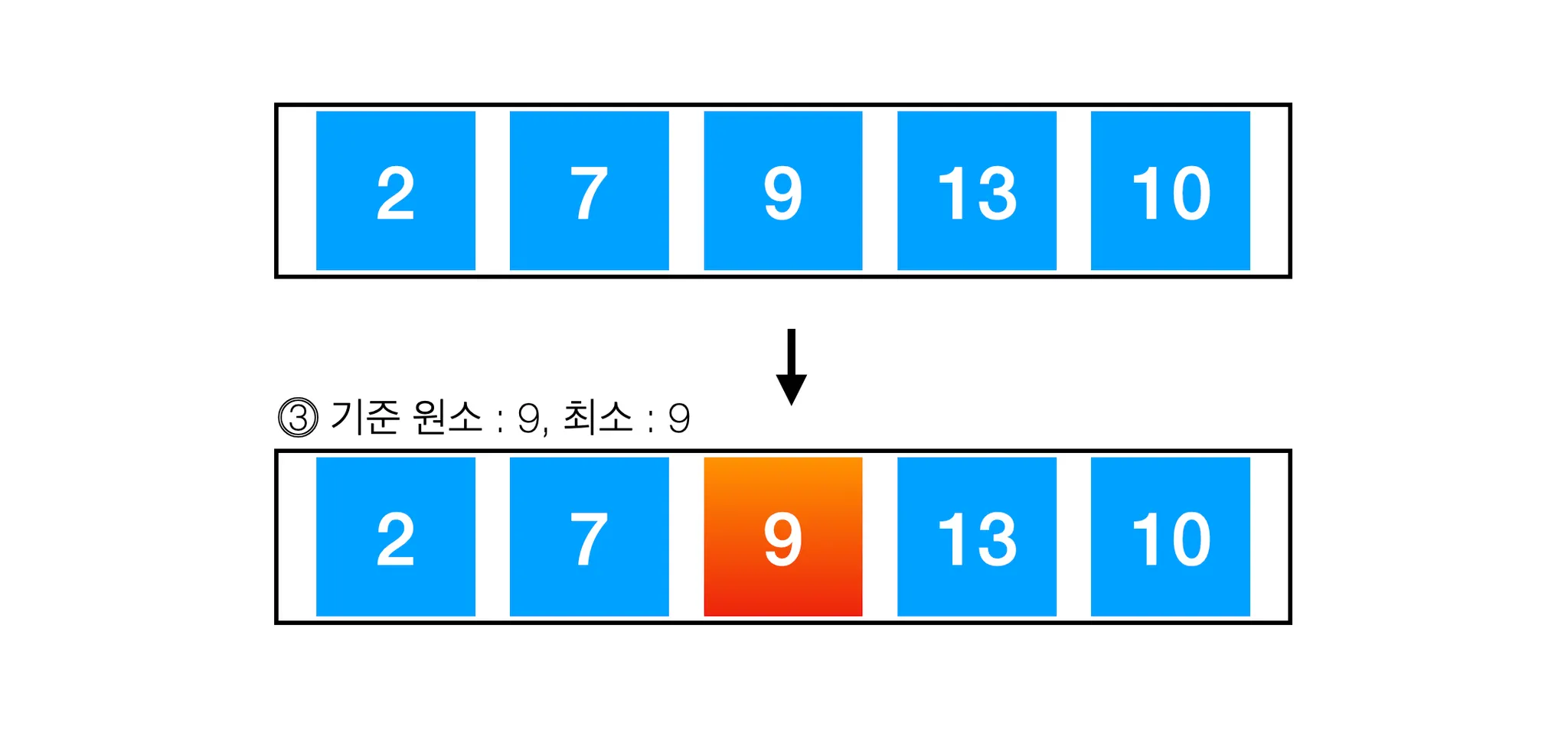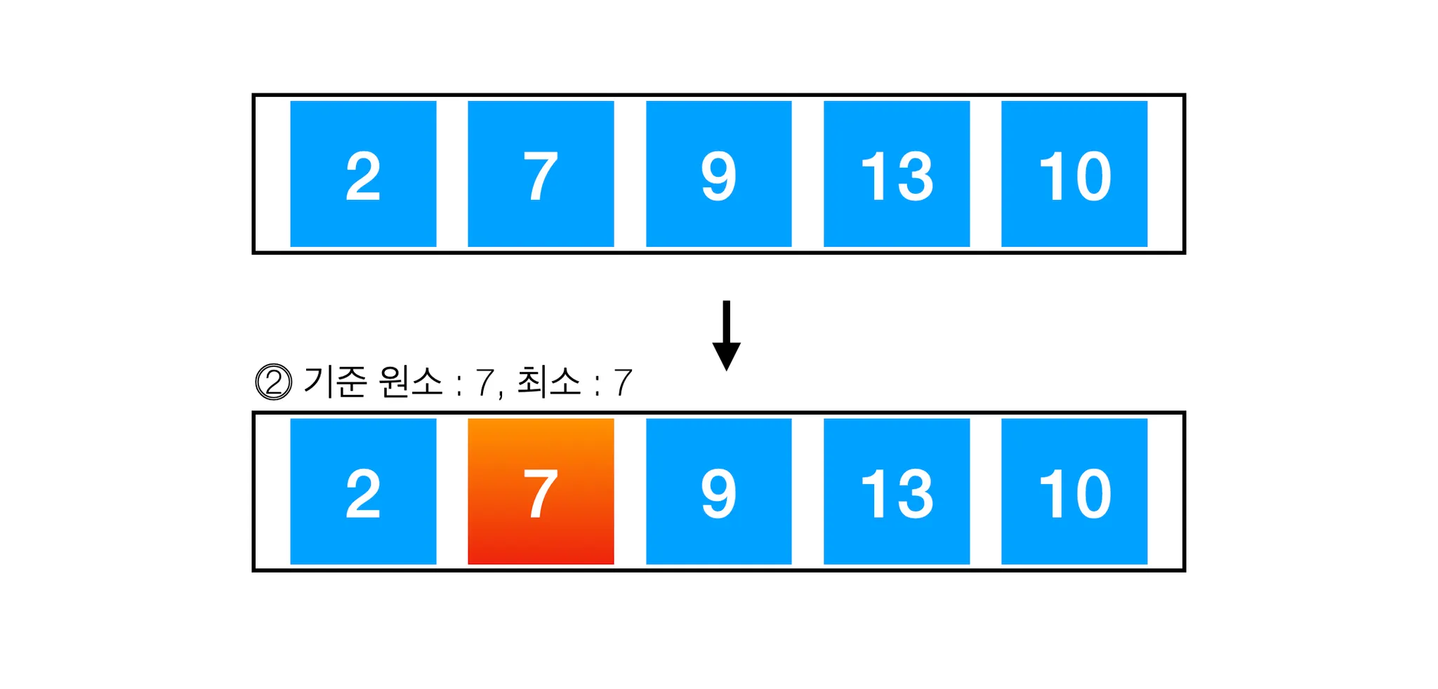 ⓵ 기준 원소를 포함해서 최소값을 탐색합니다.