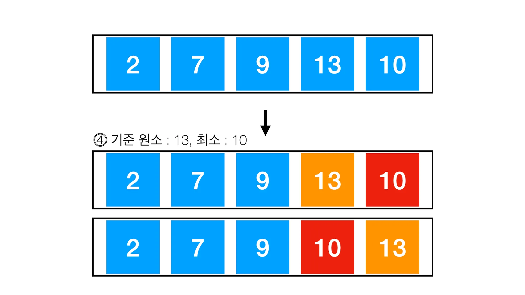 ⓵, ⓸ 은 기준 원소보다 작은 최소값이 존재합니다.