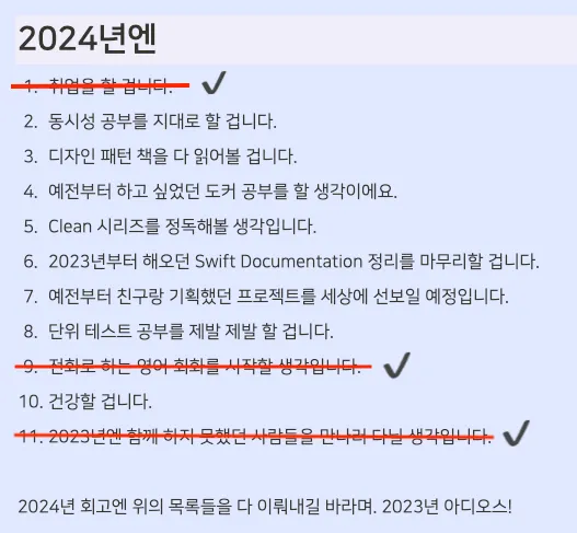 하지만, 더이상 물러날 곳이 없고 WWDC24도 나왔기 때문에 이번 회고와 함께 블로그 글을 다시 열심히 써보겠습니다. 아자. 아자.