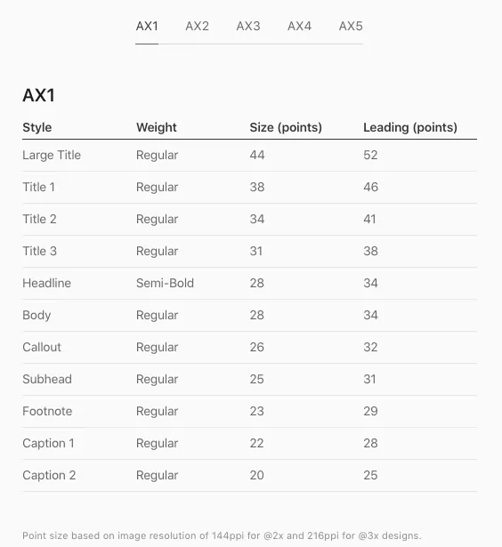 Dynamic Type 에 따른 텍스트 스타일의 weight, size, leading(행간)