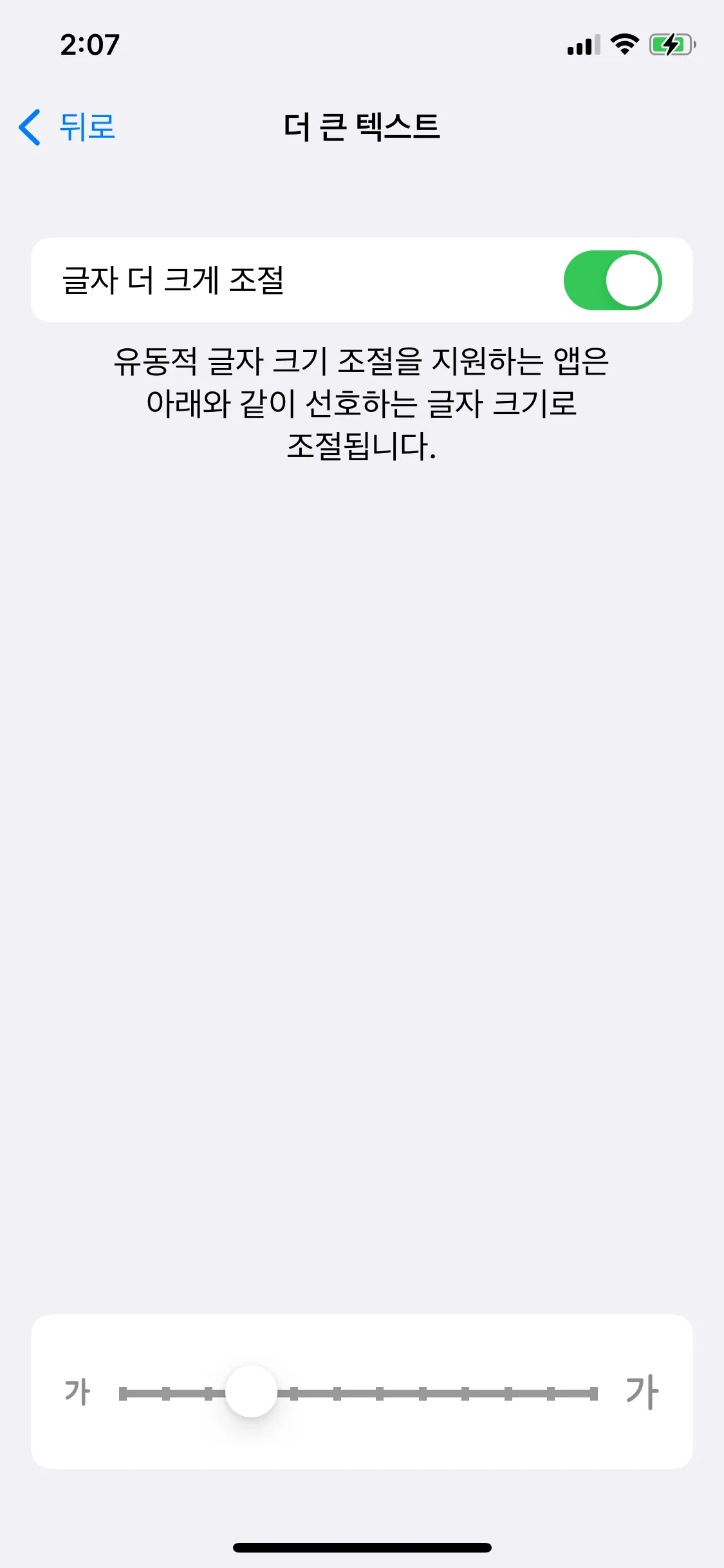 사용자가 지정한 텍스트 크기에 따라 동적으로 크기가 변하는 것