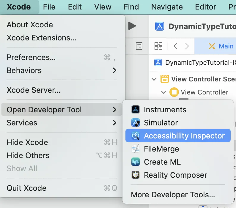 Xcode > Open Developer Tool > Accessibility Inspector