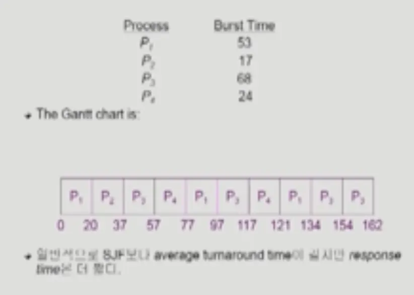 CPU를 짧게 사용하는 프로세스가 얼른 쓰고 나갈 수 있게 해주는 것이 Round Robin 스케줄링 방식의 중요한 장점이다.