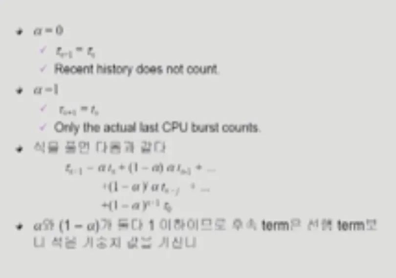 예측 시간은 n번째 실제 CPU사용 시간과 n번째 예측했던 CPU 사용 시간을 일정 비율씩 곱해서 더한 값이다.