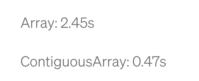 하지만, 해당 타입을 가지는 배열을 만든다고 한다면 Contiguous Array로 만드는 것이 성능이 향상된 효과를 얻을 수 있습니다.
