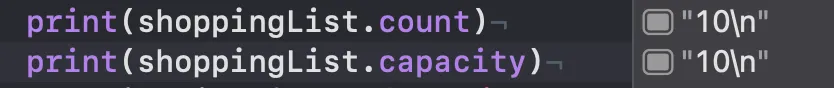 count말고 count와 비슷한 프로퍼티가 있습니다. capacity입니다. 출력해보면 count와 동일한 값을 출력합니다.