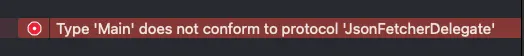 Main이라는 클래스에 JsonFetcherDelegate를 채택했을 때, 코드를 저렇게 두면 컴파일 에러가 발생합니다.