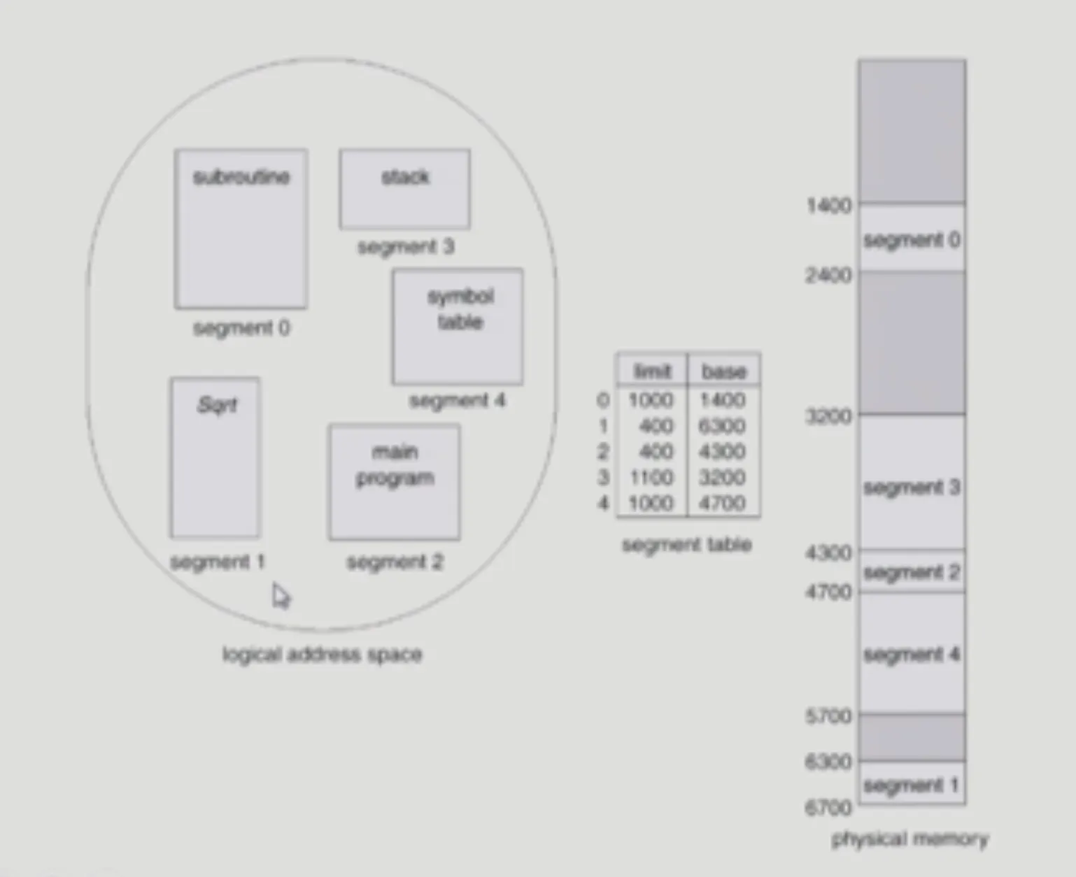 Segment table에는 Segment들의 물리적인 메모리 상의 시작 위치가 적혀있음