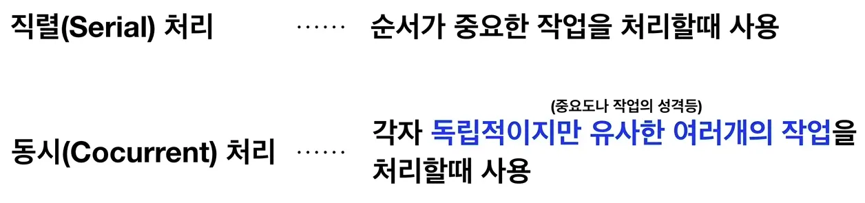 작업에 순서가 필요할 수도 있기 때문에 직렬 처리가 필요합니다.