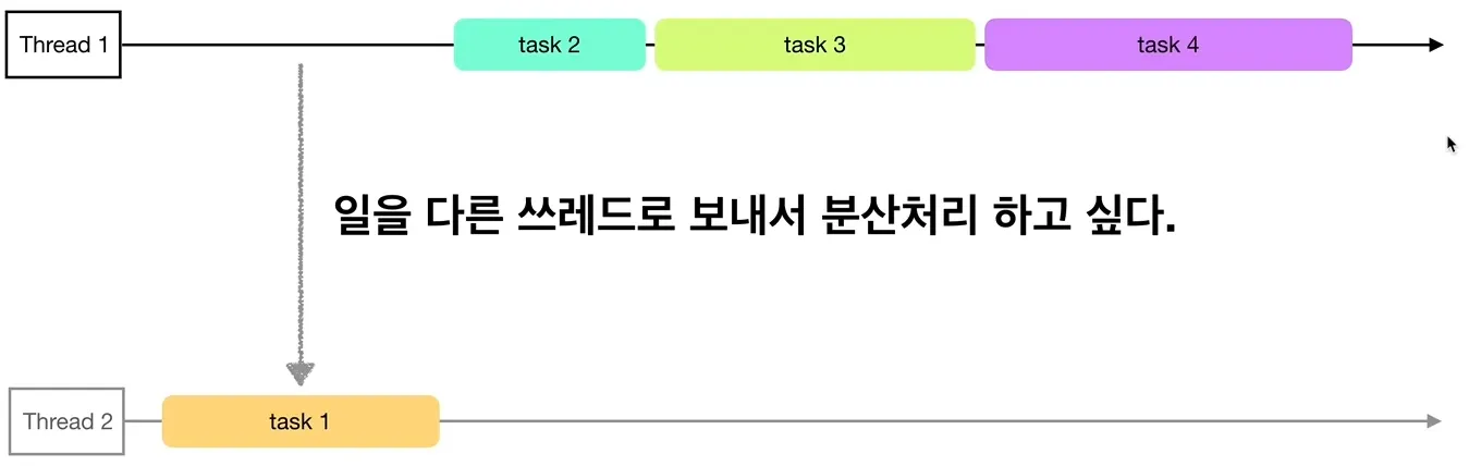 이렇게 다른 쓰레드로 Task를 분산처리하는 전체적인 개념에 대해서 알아봅시다!